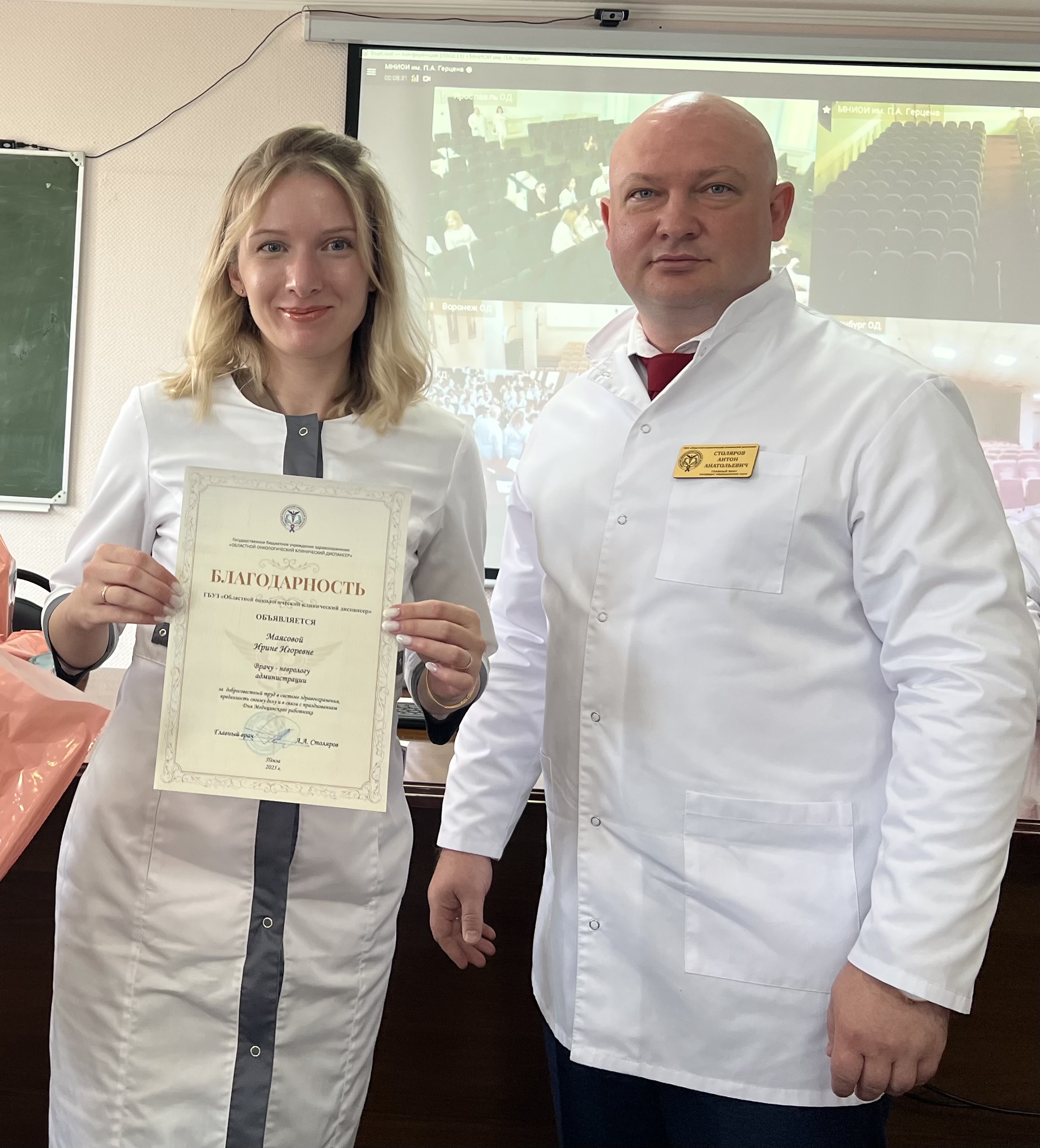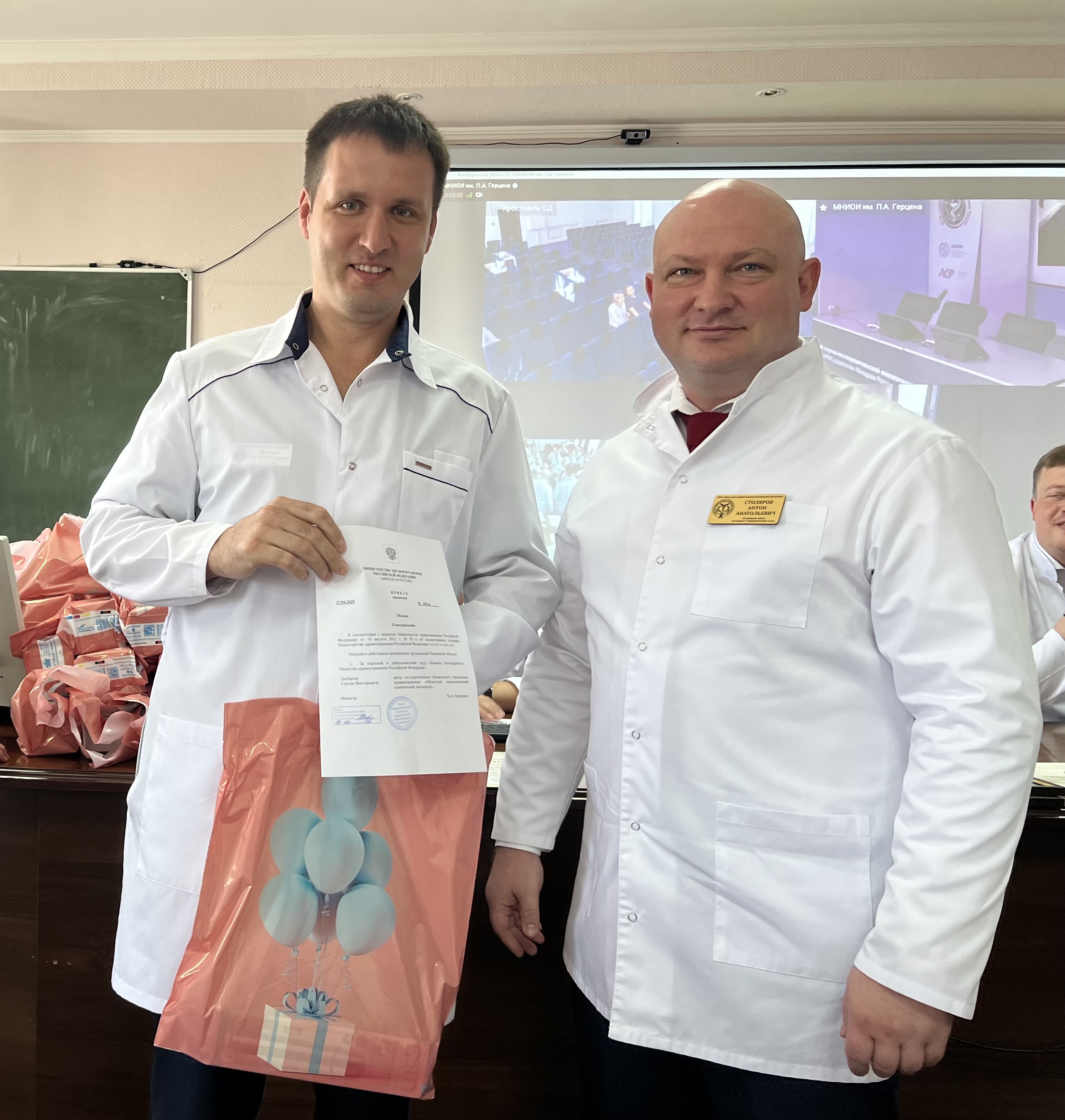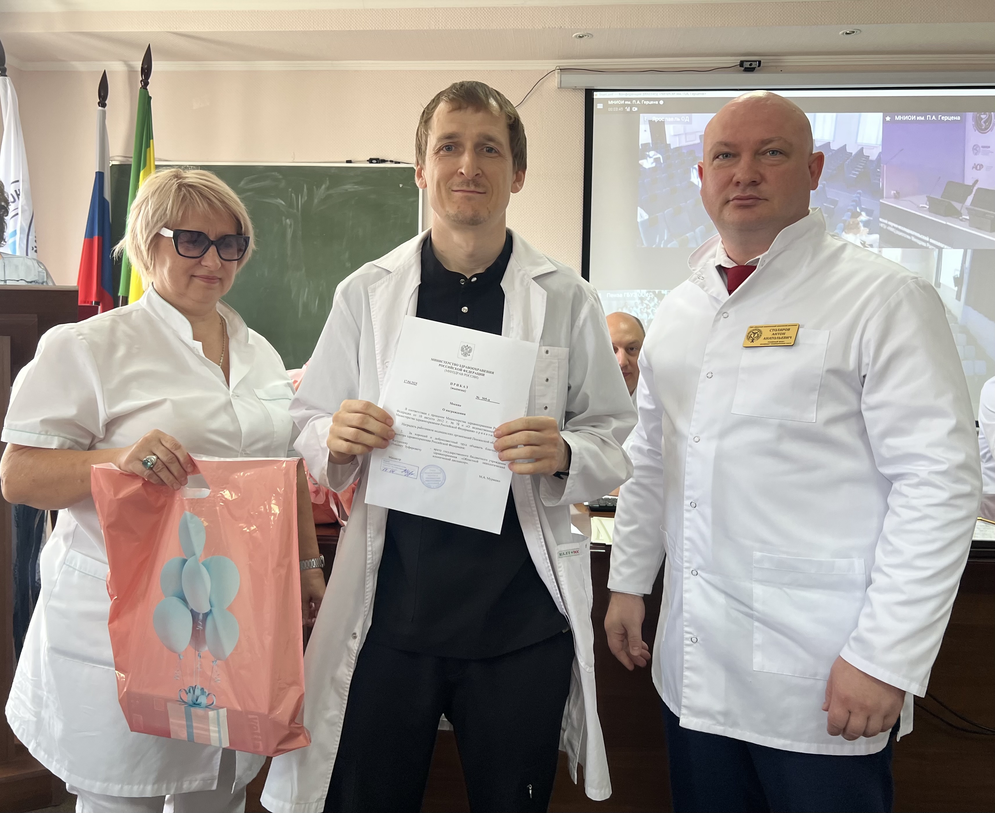 В завершение Антон Столяров вручил различные награды сотрудникам онкологического диспансера.