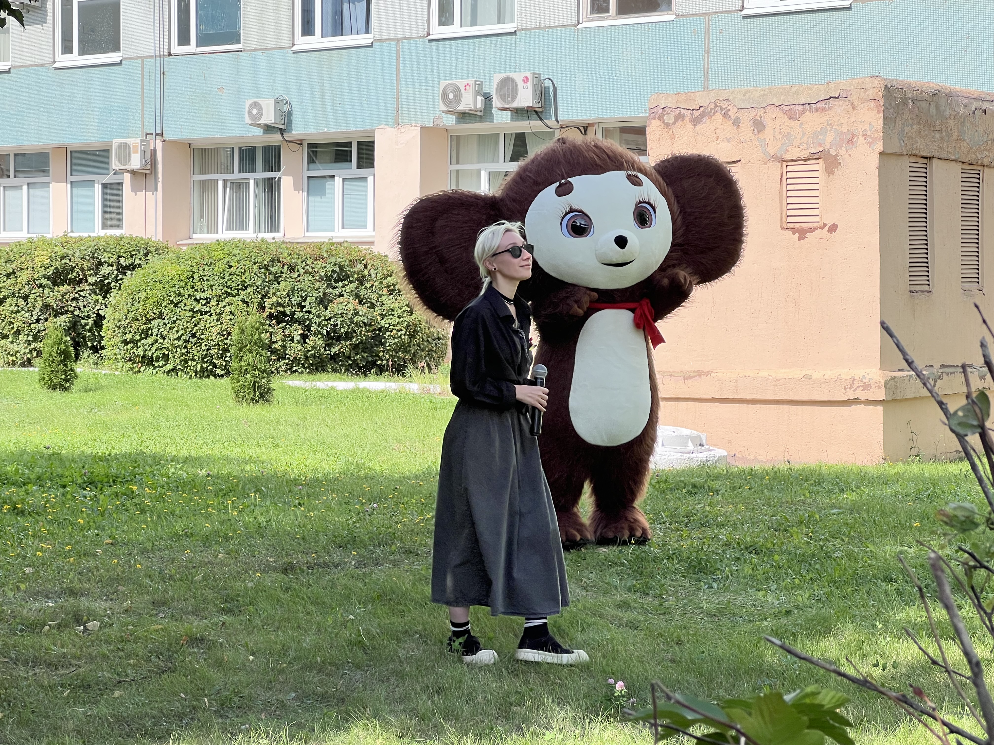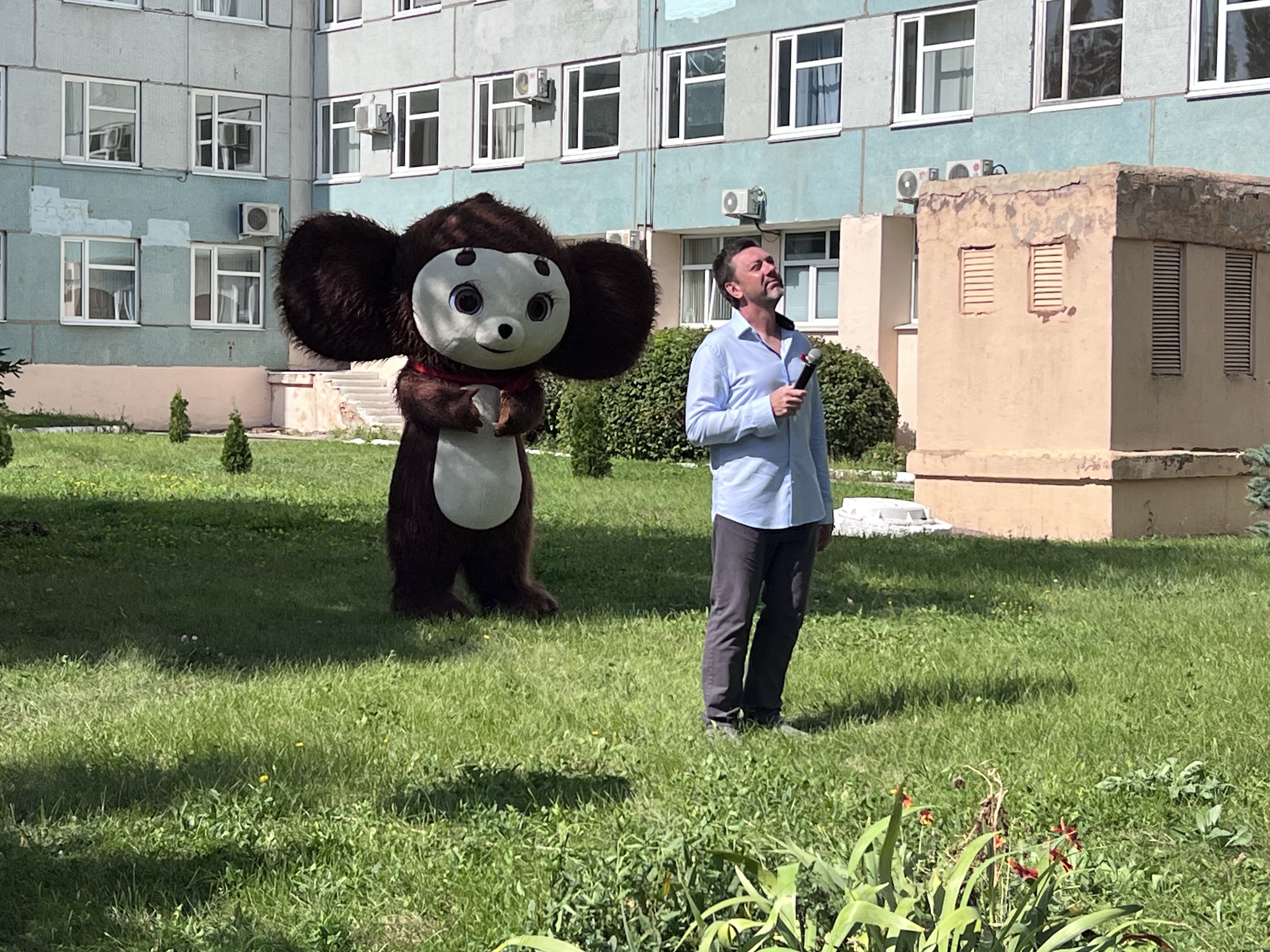 Под окнами палат, где находятся дети, был проведён концерт с участием ростовой куклы - Чебурашки, который танцевал весёлые танцы и выполнял зарядку вместе с руководителем областного отделения благотворительного фонда «Российский фонд милосердия и здоровья». А вот выступление губернаторского ансамбля «Старгород» привлекло внимание не только ребятишек, но и взрослых.